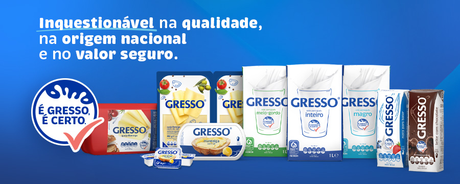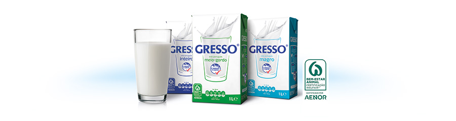 Leite português, na origem e em todo o processo de produção. Com a garantia de bem-estar das nossas vacas, na alimentação, alojamento, saúde e comportamento, certificado pela AENOR. Saboroso, rico em nutrientes.A qualidade inquestionável de Gresso num produto que é único e essencial em qualquer lar.
