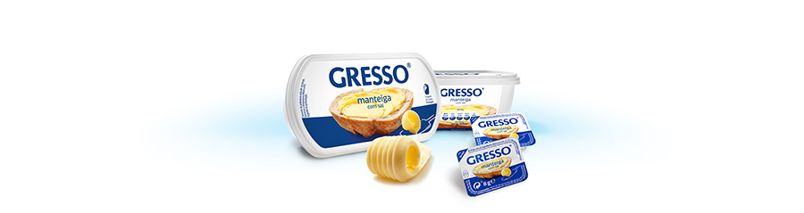 Deliciosa! Com sal no ponto certo e toda a qualidade do nosso leite, é a manteiga Gresso a fazer as delícias de todos.