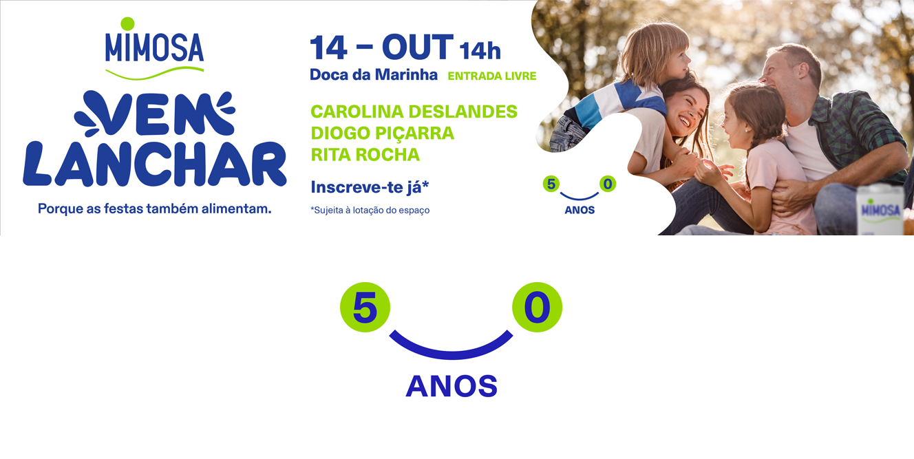 Haverá muita diversão, atividades e, ainda, boa música, com Carolina Deslandes, Diogo Piçarra e Rita Rocha, que vão subir ao palco Mimosa para interpretar canções que todos conhecem e protagonizar um momento único: cantar os parabéns à marca que é parte de nós há 50 anos.